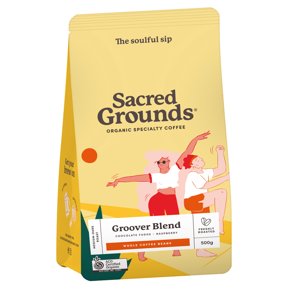 Organic Medium Dark Roast Coffee Online Groover Blend Sacred Grounds